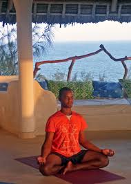 In the cool morning air of Kenya’s white sand coast, a noisy motorbike is my transport to a 6:15 am meditation class. The session is to be held on the top floor of the seven story Treehouse Hotel about a twenty minute journey away. I arrive early and so have the bonus of enjoying stellar views out over the surrounding mangrove forest to the Cerulean Blue Indian Ocean just beyond.